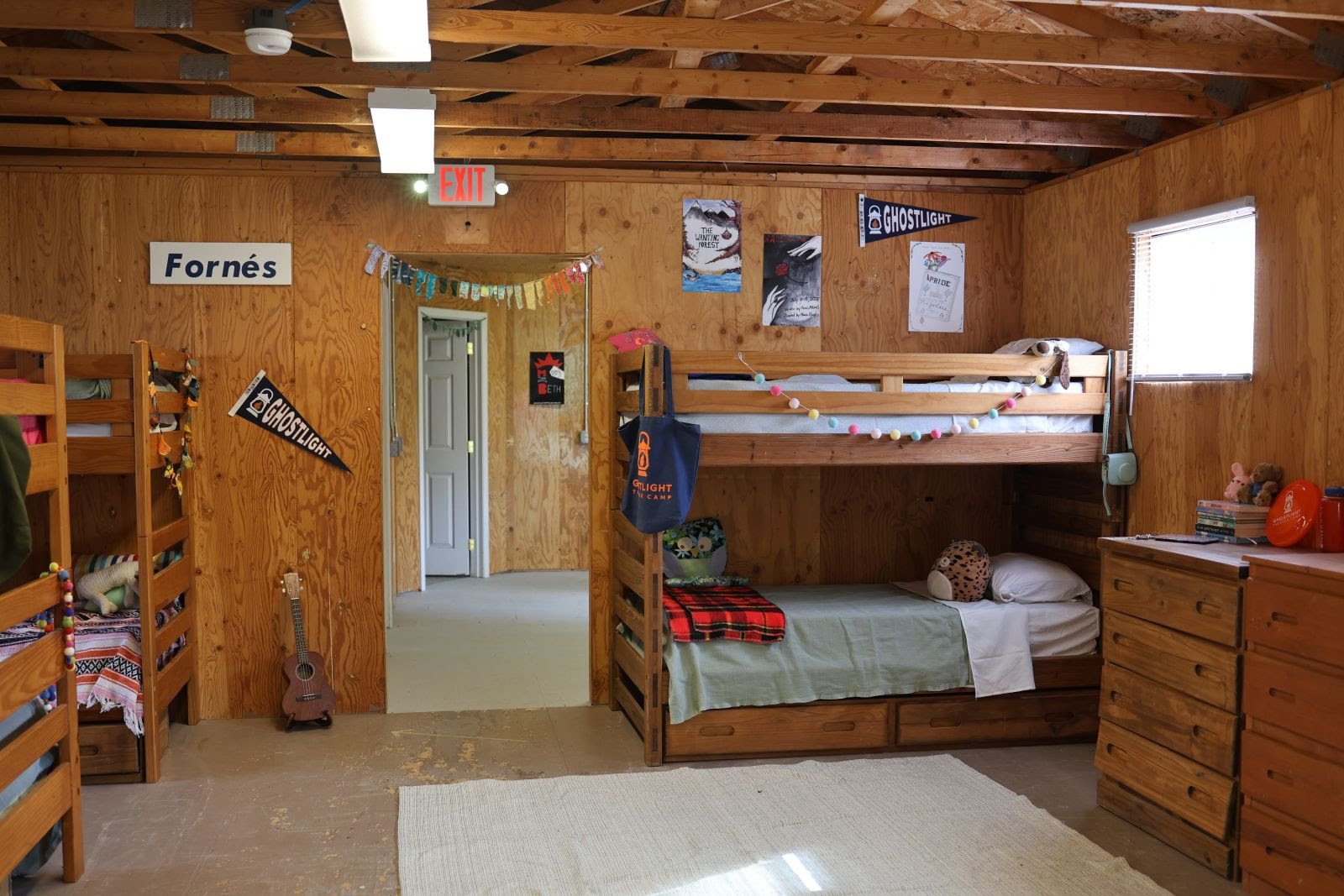 Campers live in cabins on Ghostlight’s campus. Each cabin houses 12-16 campers and 2-3 counselors. Each cabin has a bathroom with three private stalls, three showers, and three sinks. Campers sleep in bunk beds. Cabins become the campers’ home away from home while they are at camp!