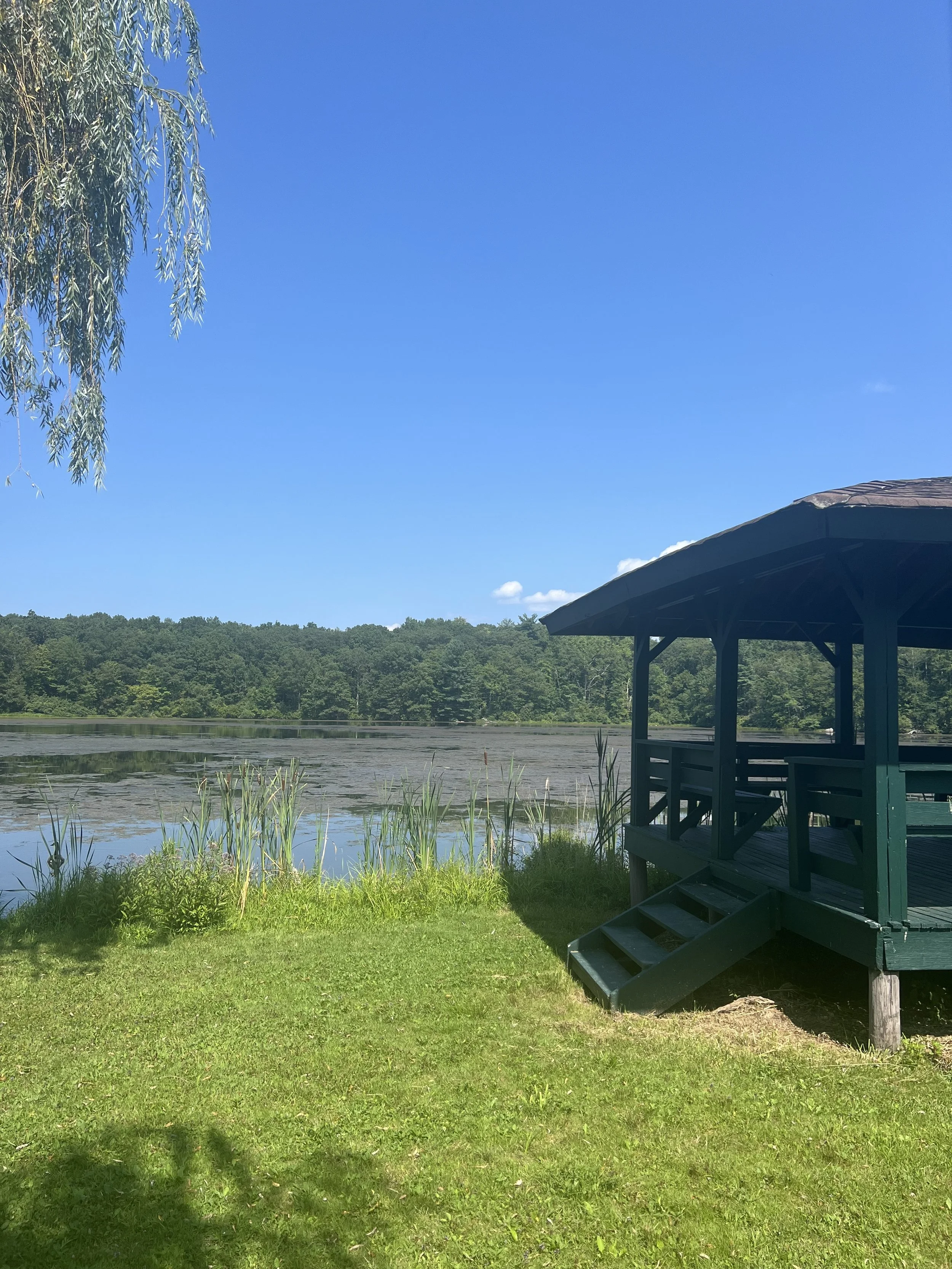 The Lakeside Pavilion is a large covered outdoor performance space: a beautiful stage, airy high ceiling, and open to the lake. We can’t wait to perform there!
